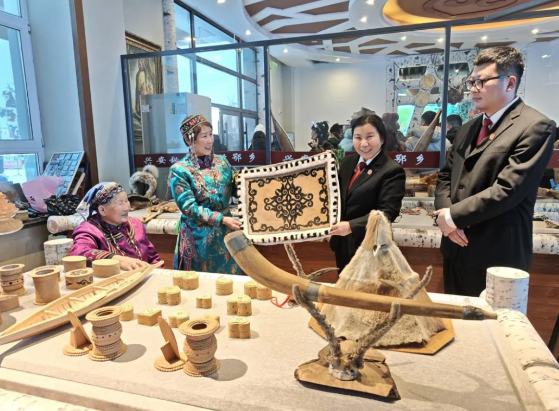 鄂伦春族是一个世代逐水草而居、以狩猎为生的民族,其桦皮制作技艺、兽皮制作技艺、古伦木沓节等非遗项目,不仅是民族文化的瑰宝,更是中华文明多元一体格局中的璀璨明珠。然而,随着时代发展,非遗文化传承面临着知识产权保护、传承人权益维护、文化资源合理开发等诸多法治课题。如何让法律为非遗传承保驾护航,成为塔河县人民法院十八站人民法庭干警心中的火热执念。
