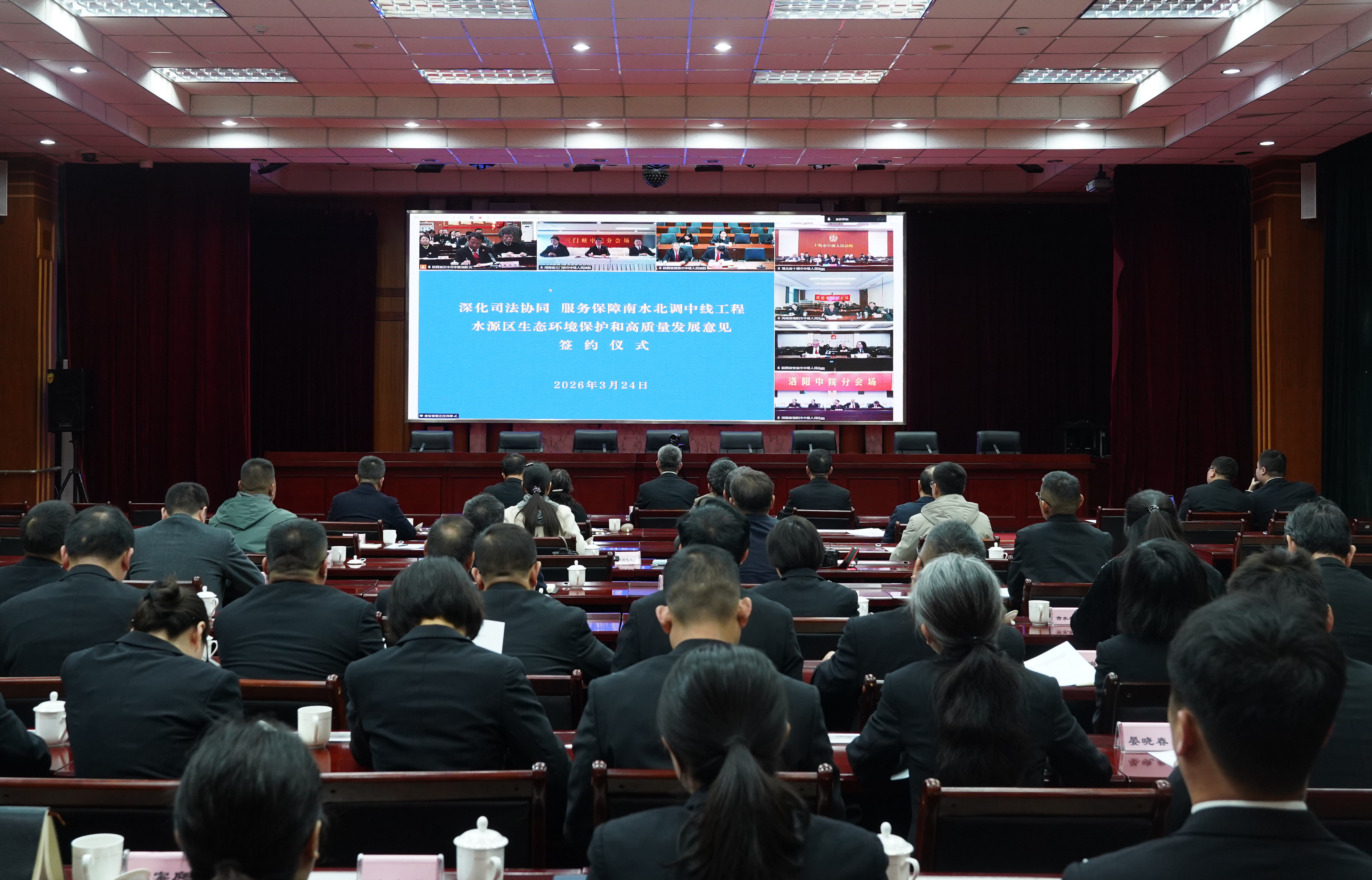 3月24日,陕西、河南、湖北三省七市中级人民法院以视频连线方式,共同签署《关于深化司法协同服务保障南水北调中线工程水源区生态环境保护和高质量发展的意见》(以下简称《意见》)。