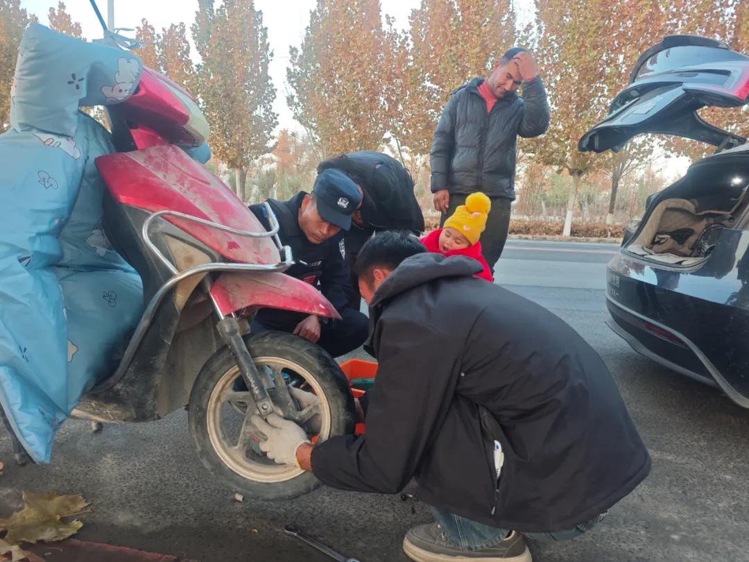 经过寒暄,民警才知道艾尼瓦尔(化名)的老婆和孩子近期从和田来到了阿拉尔。他工作地点较偏僻,住处早已经没了物资。“我承诺给他们买东西,结果他们啃了7天馕,我一休息,就赶紧买了台二手电动车,带他们去采购,谁知道胎爆了!”