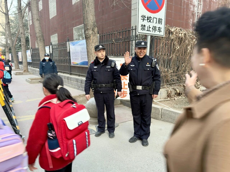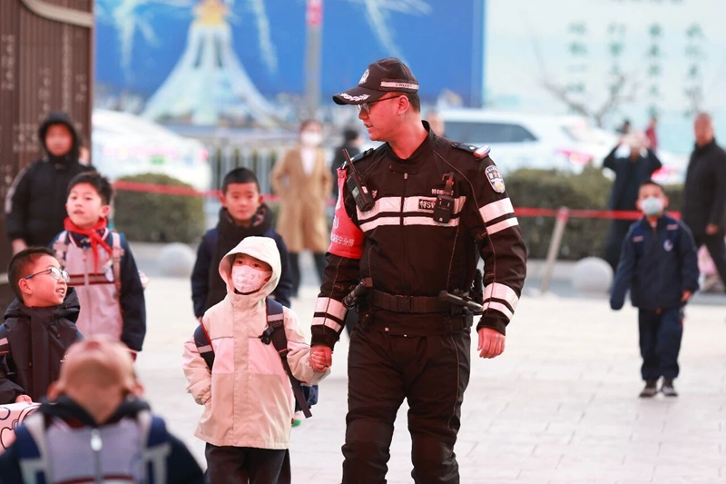 上下学重点时段,严格执行高峰勤务和护学岗机制,确保校园周边重点路段见警察、见警车、见警灯。采取定点值守与动态巡逻、视频巡查相结合的方式,疏导交通、劝离违停、清理摊点,及时化解矛盾纠纷,联动教师、家长志愿者构建“三位一体”护学网络,守护学生出行安全。