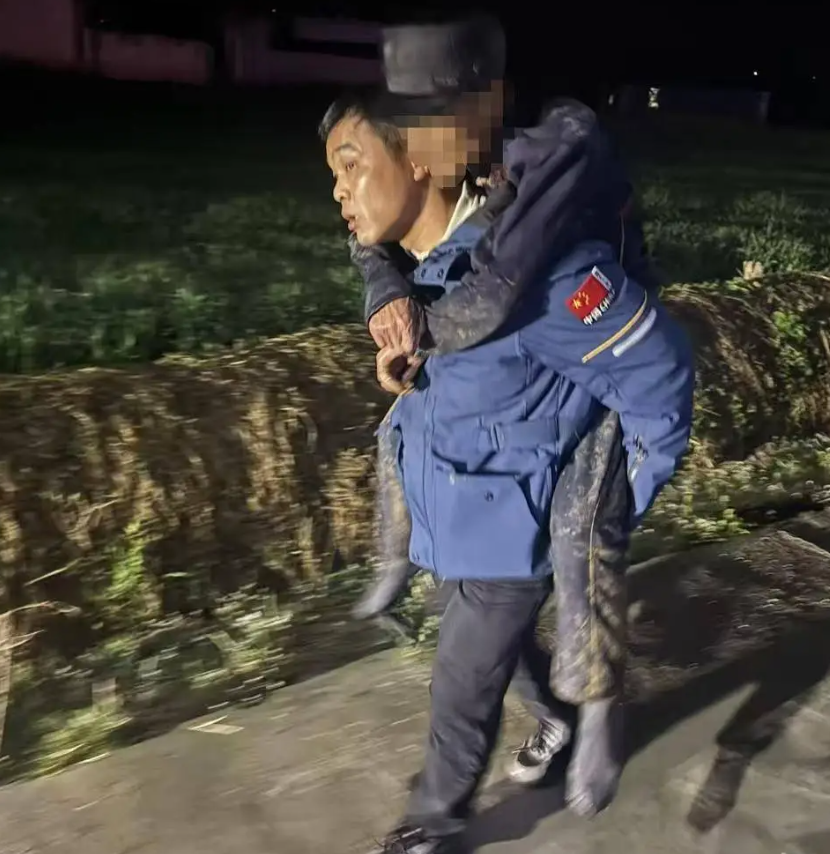 见此情形,救援队员第一时间将老人抱起背在身上,迅速脱下自身大衣,紧紧裹在老人身上为其保暖。即便如此,老人依旧不停喊冷,队员们立刻联系邻居取来干净衣物,同时准备热水,细心为老人擦拭身体、更换干爽衣裤,缓解老人受寒症状。后续处置过程中,大家发现老人无法平躺、腰背侧弯,头部与脚部均有不同程度的擦伤、摔伤痕迹,初步判断老人可能存在腰椎损伤,需立刻送往医院接受专业检查。