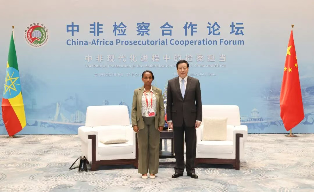 应勇与埃塞俄比亚总检察长汉娜·塞拉西进行会见。