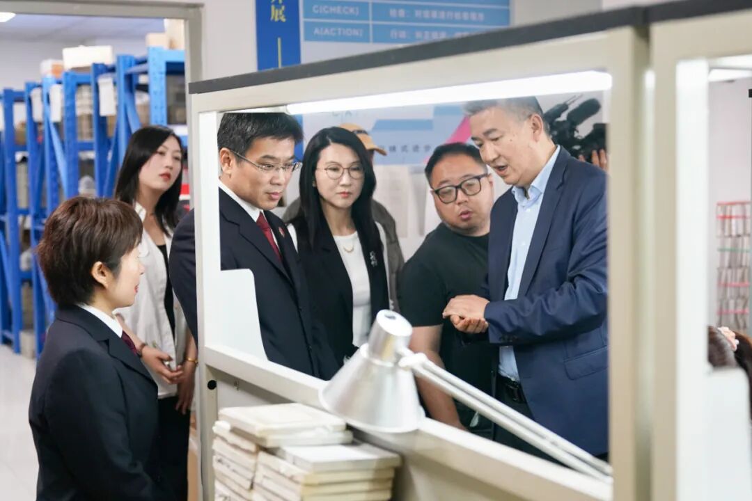 上海市普陀区检察院公益检察室检察官走访英雄金笔厂,调查档案保护情况。