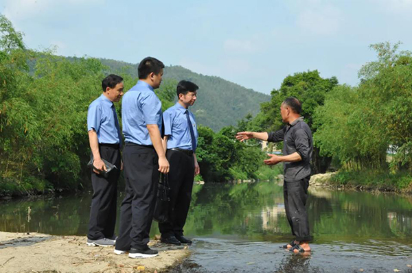 龙岩市上杭县检察院检察官与当地政府工作人员实地查看汀江治理情况