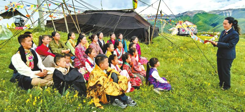 2025年7月,甘孜县检察院检察官在牧场为孩子们开展法治宣讲。本版图片均由四川省人民检察院提供