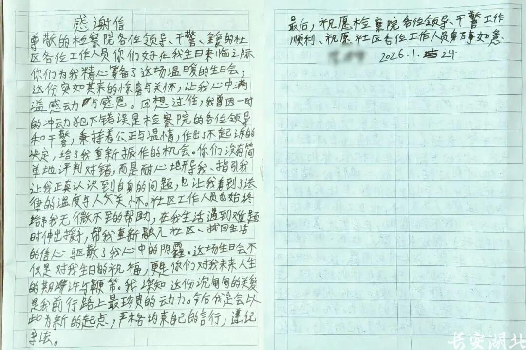 小军站起身,朗读自己提前写好的感谢信。“这份沉甸甸的关爱是我前行路上最珍贵的动力,今后我定会以此为新的起点,严格约束自己的言行,遵纪守法。”朴实的话语里满是感恩,让在场每个人都为之动容。