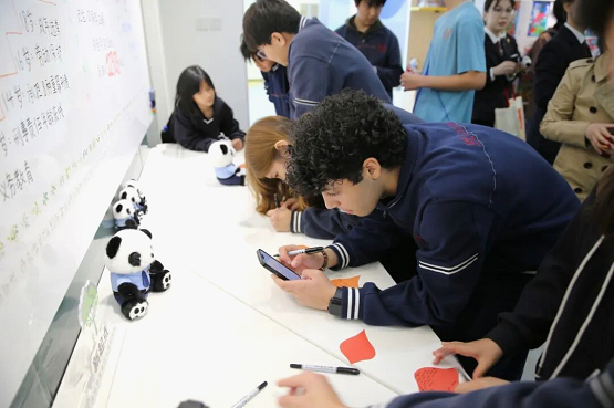 未检办主任赵颍手持西城检察院专属检察熊猫“点点”,以轻松有趣的互动问答点燃现场氛围,拉开法治课堂序幕。在图文并茂的宣教墙前,检察官用趣味十足的语言,讲述了晦涩的法律条文。从性侵案件中“No means no”(“不就是不”)的规则阐释,到围绕各国最低刑事责任年龄的现场交流,再到明确“Stay away from porn, gambling, and drugs”(远离黄、赌、毒)的行为底线,同学们听得投入、学得扎实。漫步大事记,一项项工作成果,向外籍学生展现着西城检察院未检工作三十七载的深厚积淀。在提到创办于2000年的“西检杯”中小学生思想道德法律知识竞赛时,同学们积极回应,期待在今年底第27届“西检杯”竞赛中,能与中国同学们一起交流竞技。