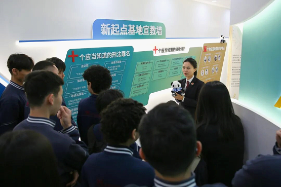 同学们走进案例展示区热议一起学生欺凌真实案例,走进帮教矫治区体验心理疏导流程,走进未检专用讯问室了解合适成年人制度,走进视频展示区观看“新起点说法”英文版普法原创短视频……在趣味互动问答、实景体验探索、鲜活案例教学的轻松氛围中,同学们了解中国涉未成年人常见罪名,学习中国特色未成年人司法保护制度,畅聊不同国家的法律文化差异。同学们走过基地的每一处,都诠释着西城检察院“新起点”未检品牌的内涵——“Change has no final endpoint, only new beginnings.”(改变没有终点,只有新的起点)。
