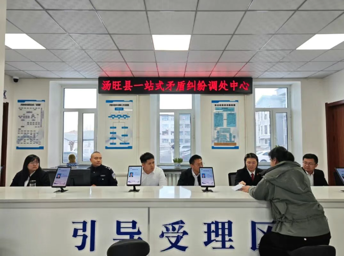 汤旺县综治中心以“五项融合”为治理核心,打破以往部门各自为战的壁垒,构建起上下联动的服务体系。阵地贯通融合,推动城关镇力量入驻中心,形成县、镇、社区三级服务网络,让群众诉求不用多头跑;岗位协同融合,创新“1+1+N”联合调解模式,整合城管、市监、公安等多部门力量,实现一站式调解;化解闭环融合,建立受理、分流、化解、办结“四岗闭环”和县、镇、社区三级化解体系,确保矛盾化解不悬空;服务延伸融合,打通“线上平台提交+线下窗口对接”渠道,让群众在家也能反映问题;数据共享融合,打通县镇信息壁垒,实现案件信息实时流转,为高效处置提速。从诉求受理到矛盾化解,从法律解答到结果反馈,全流程都能在“一扇门”内完成,真正实现进中心解纠纷。
