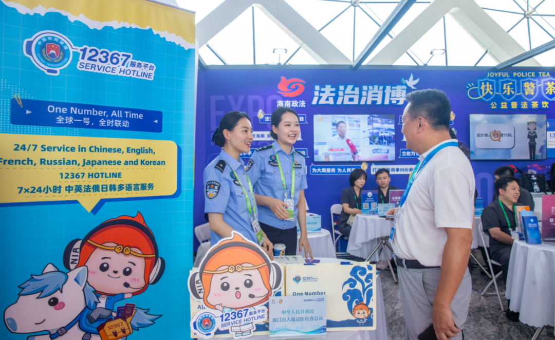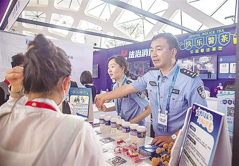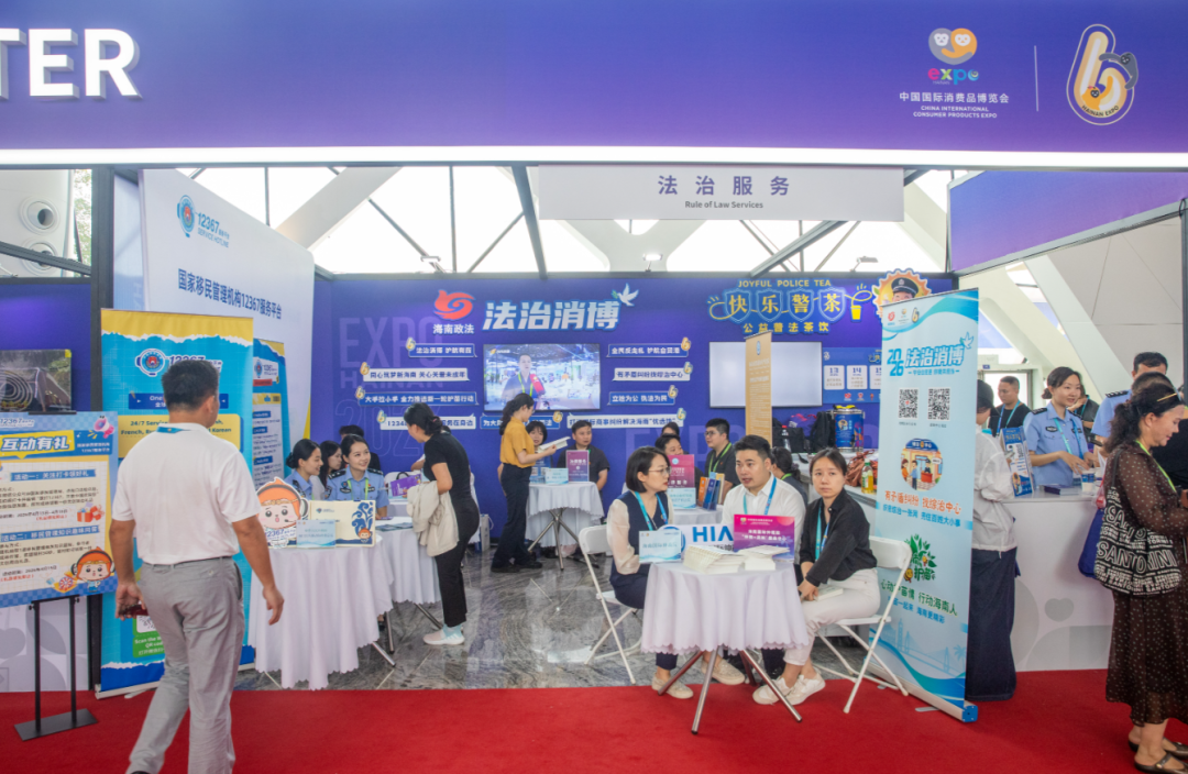 今年,由海南省委政法委组织开设的法治服务专区首次亮相,以全方位的法治服务为消博会保驾护航。其中,省委政法委与海口市公安局联动创新普法宣传形式,推出的“警茶局”再次成为消博会的一大亮点,以趣味互动和公益茶饮为载体,为国内外参展人员送上一场别开生面的“法治茶局”。