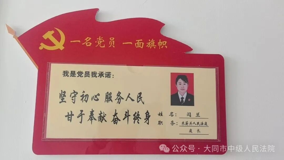 镌刻着“我是党员我承诺:坚守初心,服务人民,甘于奉献,奋斗终身”字样的牌子就挂在她办公室门口。